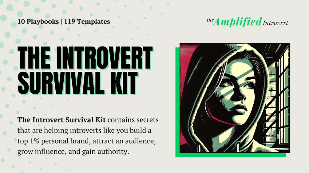 The Introvert Survival Kit contains ten personal branding playbooks I wrote to help other introverts build a brand, find their tribe, and grow authority.